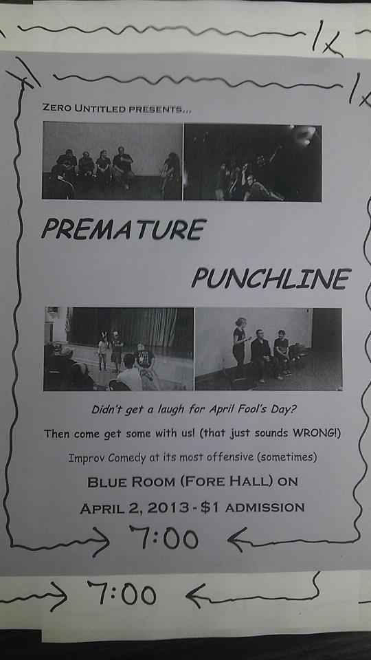 PrePunch, our resident comedy improv troupe, has a performance TOMORROW (Tues) night in the Blue Room at 7:00!