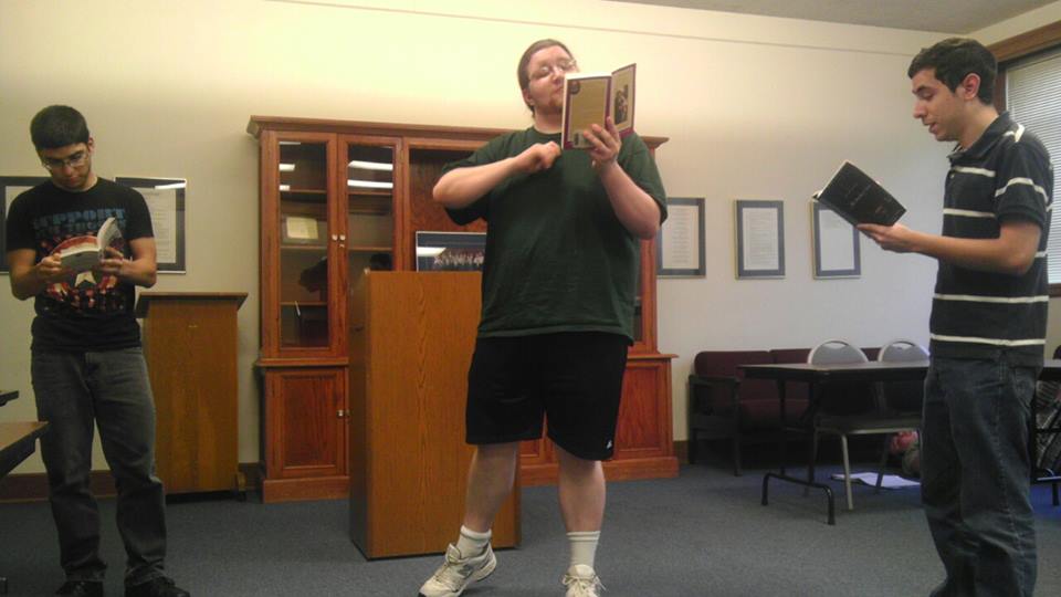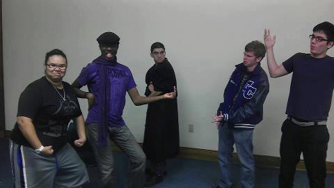 (Performing in the short play “House Party Mix Up” as part of the “Fish and Giggles” show: A. Medina, McCaulley, L. Zaragosa, R. Watkins, C. Bonitz)