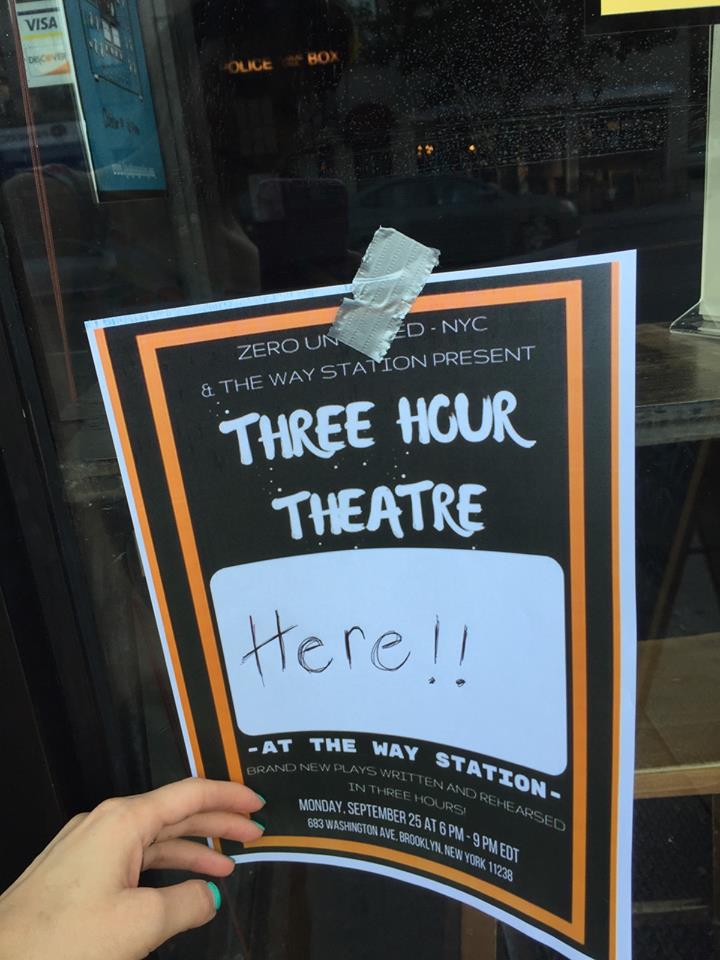 “Three Hour Theatre” is our annual play-writing festival that was staged in Brooklyn, NY this year, in collaboration with our new branch Zero Untitled – NYC and the host venue The Way Station. Production took place on Monday, September 25, 2017.