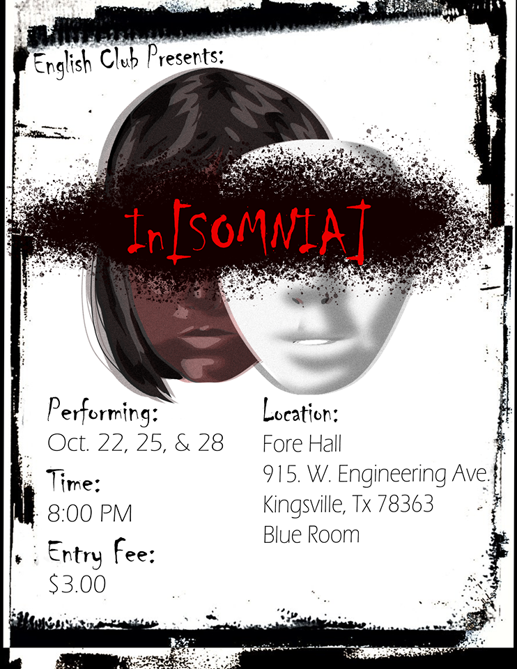 Designed by Merideth Harvey, the official flyer for the forthcoming play “in[SOMNIA]” by Katherine Orozco-Verderber is up. You can find the black official version and the white EC version.Under the direction of Katherine Orozco-Verderber and Michael Verderber, the trailer pays homage to a horror classic.
