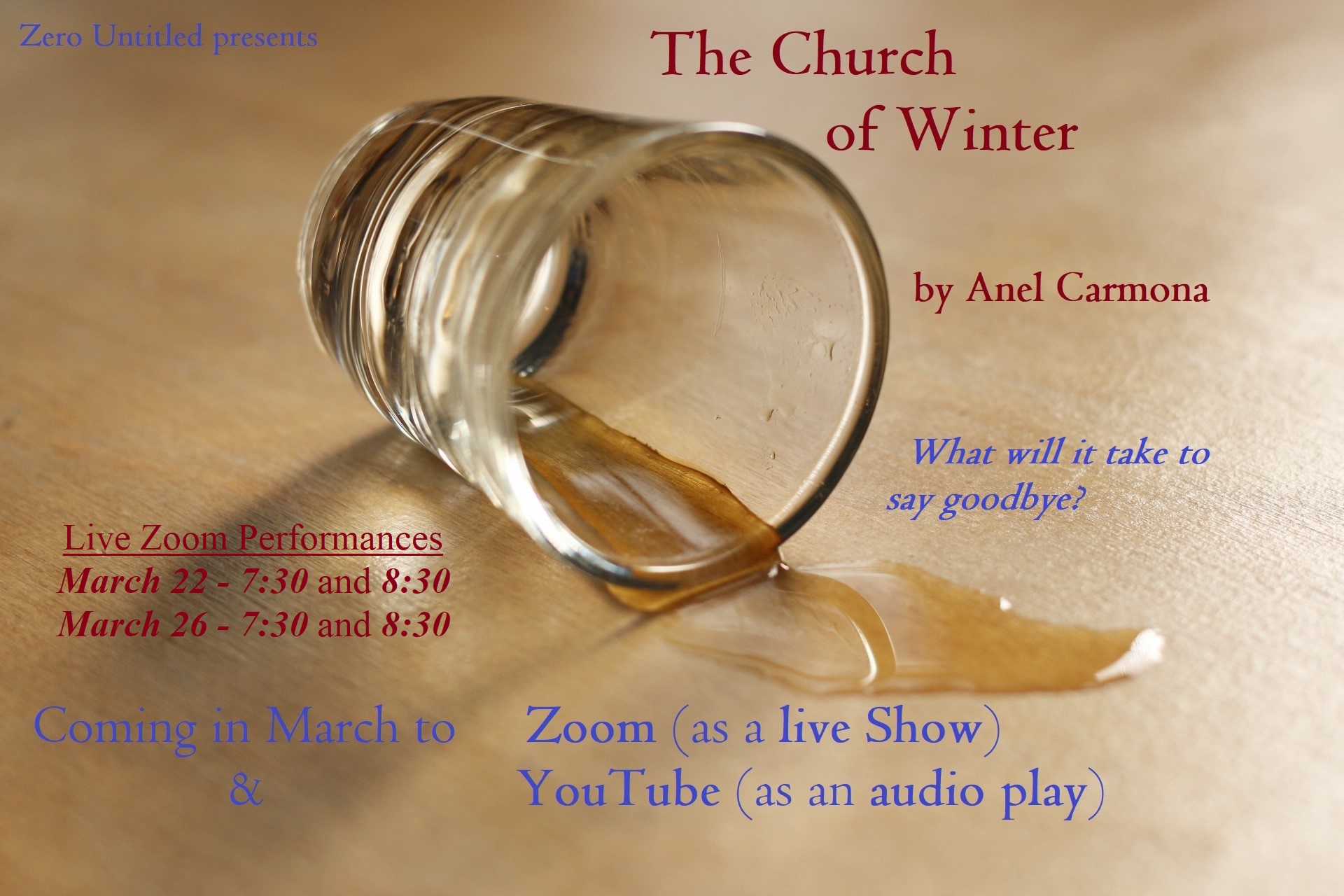 Following a similar schedule, the Anel Carmona play “The Church of Winter” will also have back-to-back performances. They are scheduled for March 22nd and 26th at 7:30 PM and 8:30 PM (US Central Time). Also, four performances total. Free performances, but donations are encouraged.
