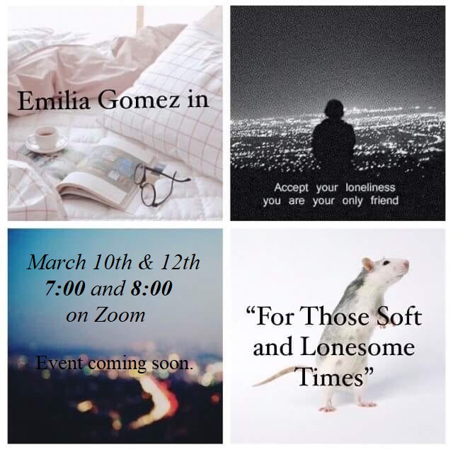 Dates have been established for our upcoming Zoom productions. Julio Martinez’s monologue play “For Those Soft and Lonesome Times” will be performed on March 10th and 12th, with back-to-back performances at 7:00 PM and 8:00 PM (US Central Time). Four performances total. Free performances, but donations are encouraged.