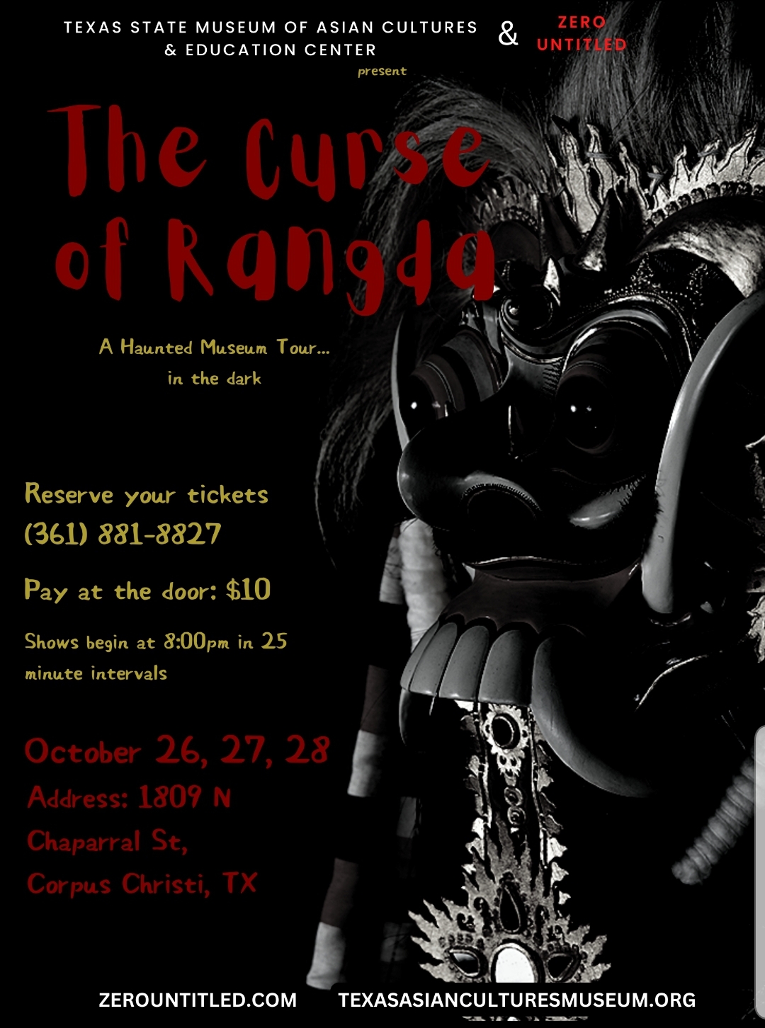 And speaking of that, we will return to our favorite new venue, the Texas State Museum of Asian Cultures! Performances are October 26, 27, and 28. Performances are based on reservations and start times are 8:00, 8:20, 8:40, 9:00, 9:20, and 9:40, each night.