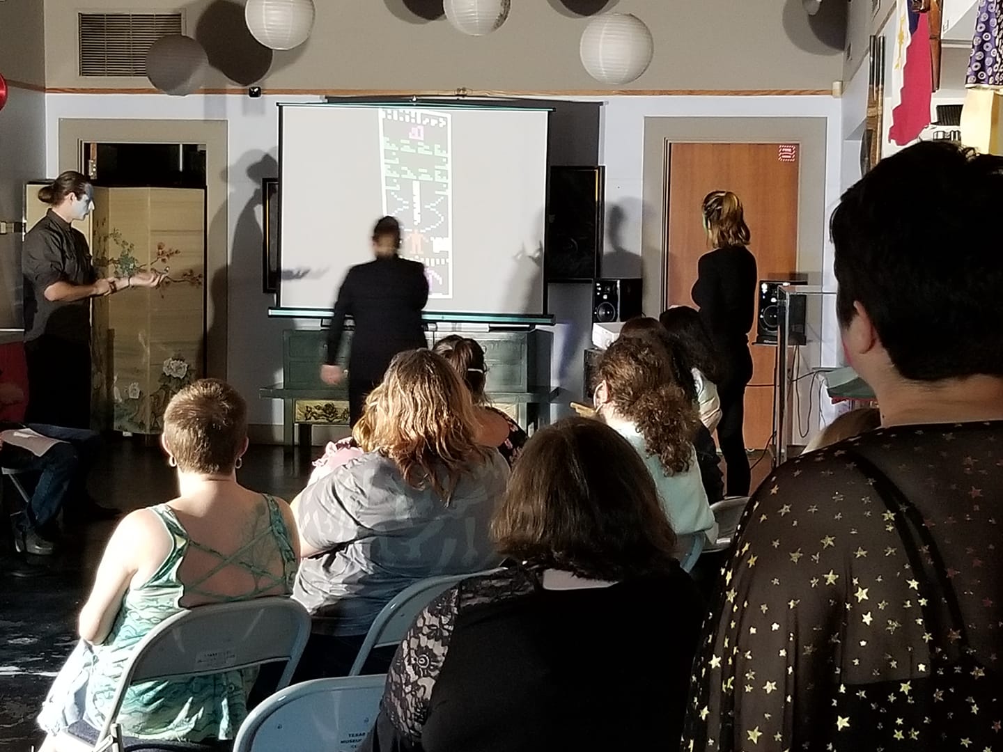 - Volume checks. With the play “Innocuous,” in which the actors ask the audience questions and vice versa, we had to go over volume checks with the audience. In character, the actors asked if everyone could hear them and for them to speak up as this show was participatory and immersive (even through Zoom). Not all audiences will want to speak up, so we suggest not spending too much time pulling their teeth, so to speak.