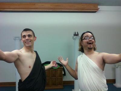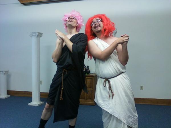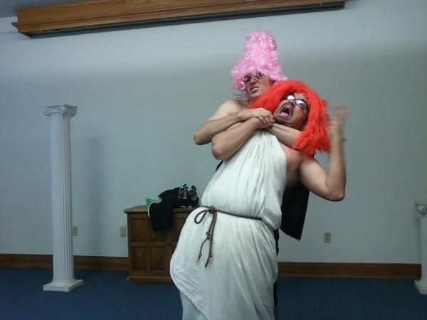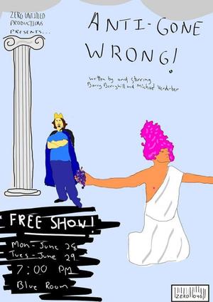 “Anti-Gone Wrong” is a street-theatre style play-within-a-play featuring two bumbling actors trying their best (which is actually their worst) at staging “Antigone.”