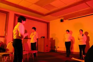 (l-r) L. Guerra, J. Leyta (floor), B. Cantu (floor), K. Orozco (cloak), V. Nguyen