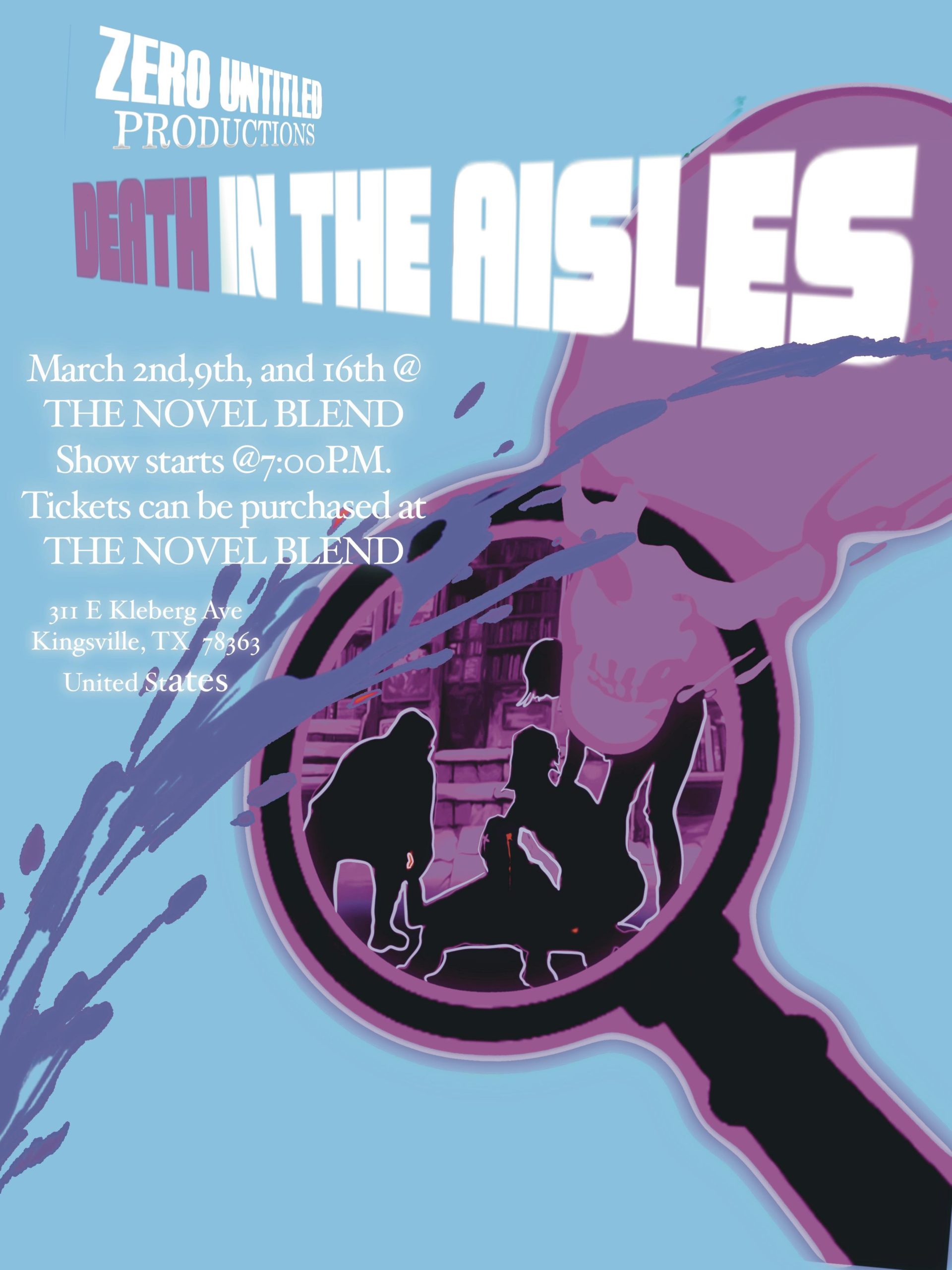 A revival of our 2023 production of “Death in the Aisles” is being produced and mounted with a brand new cast, for another run at The Novel Blend on March 2, 9, and 16. Tickets are on sale now through The Novel Blend bookstore in Kingsville.