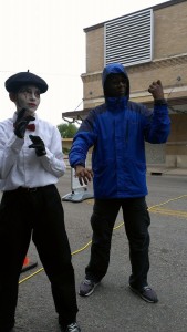 (pictured “Stretch” the Mime goofing around with ZU crew member Joshua “Beta” McCaulley.)