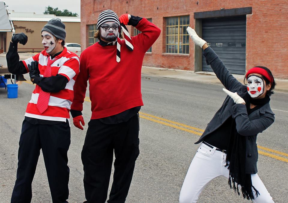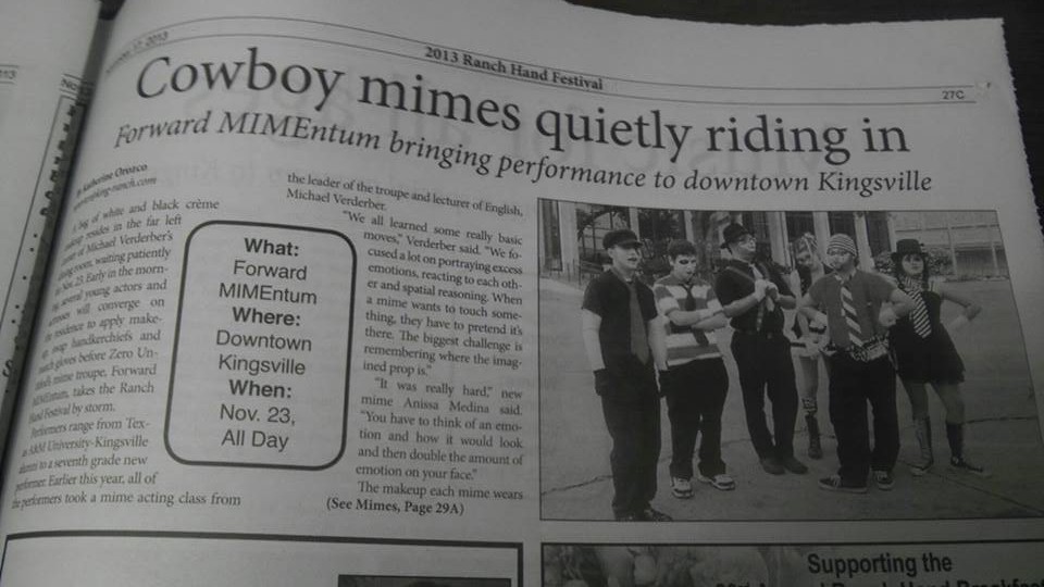 Despite the 40 degree temperature, our resident mime troupe “Forward MIMEntum” performed in semi-cowboy regalia as part of the Kingsville Ranchhand Festival on November 23 in downtown Kingsville.