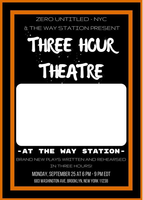 “Three Hour Theatre” is our annual play-writing festival that will be staged in Brooklyn, NY this year, in collaboration with our new branch Zero Untitled – NYC and the host venue The Way Station. Production will take place on Monday, September 25, 2017.