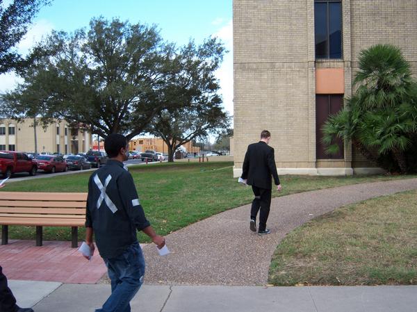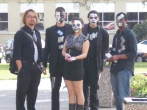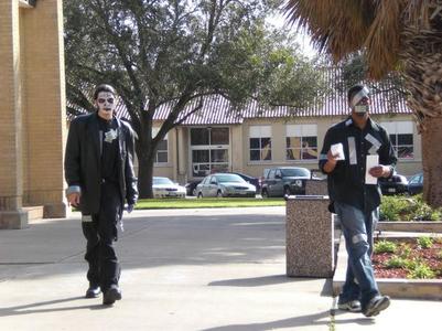 The third in the Zero Untitled Happening Series, “13°: The Political Climate of the Freemasonry,” featured actors, Kayden Nguyen, Allan Guzman, Chad Wallace, and Jeanpierre Heurtelou walking around the Texas A&M University – Kingsville campus.