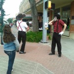 Our 93rd production came in the form of a mime Happening at the annual Kingville Ranchhand Festival on Saturday November 24, 2015. We had some new mimes perform, namely two female mimes – Betty and Clover. In addition to the new girls, we had two new(er) mimes Doodle and Russell, last seen over the summer.